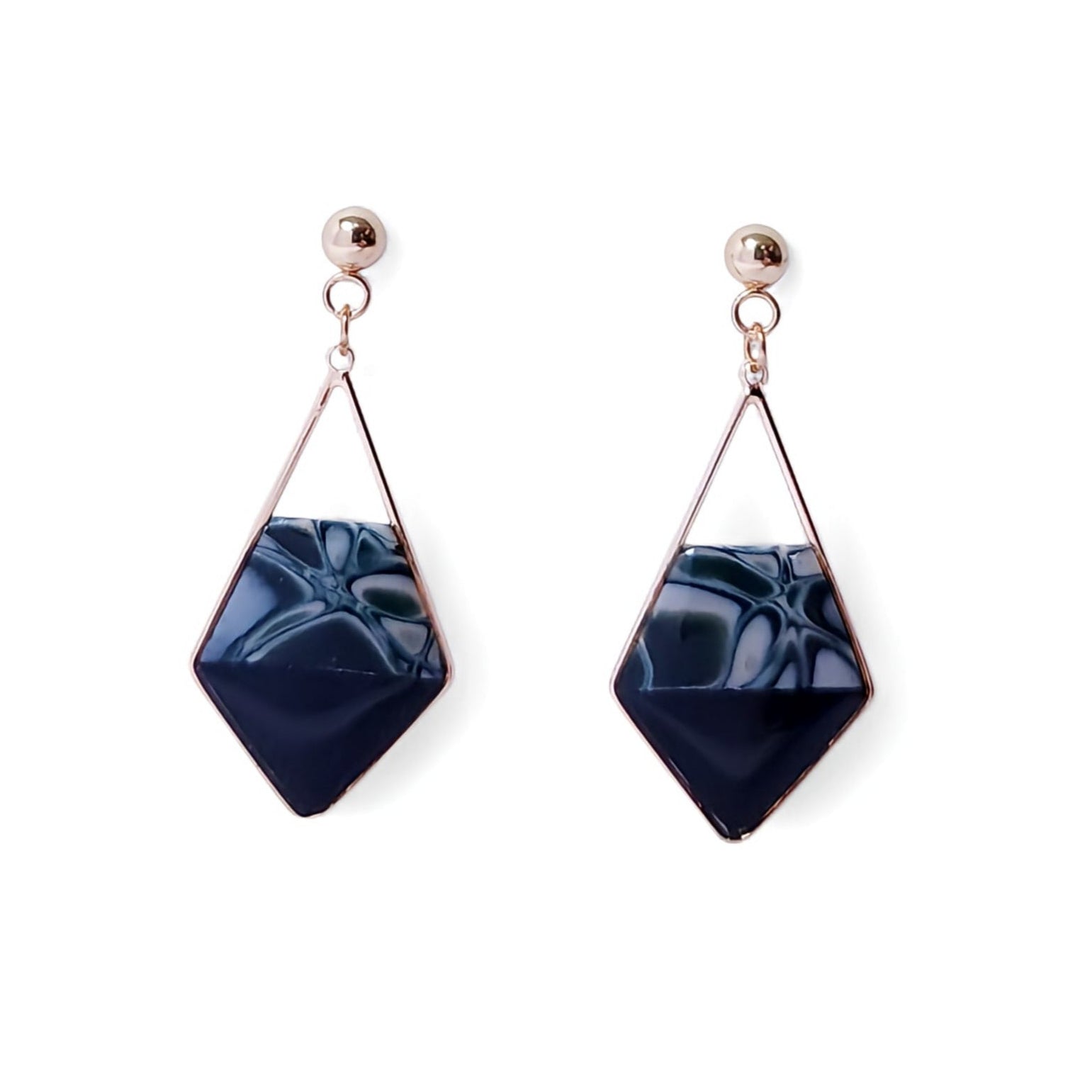 Boucles d’oreilles Losange Bleu Nuit Marbré