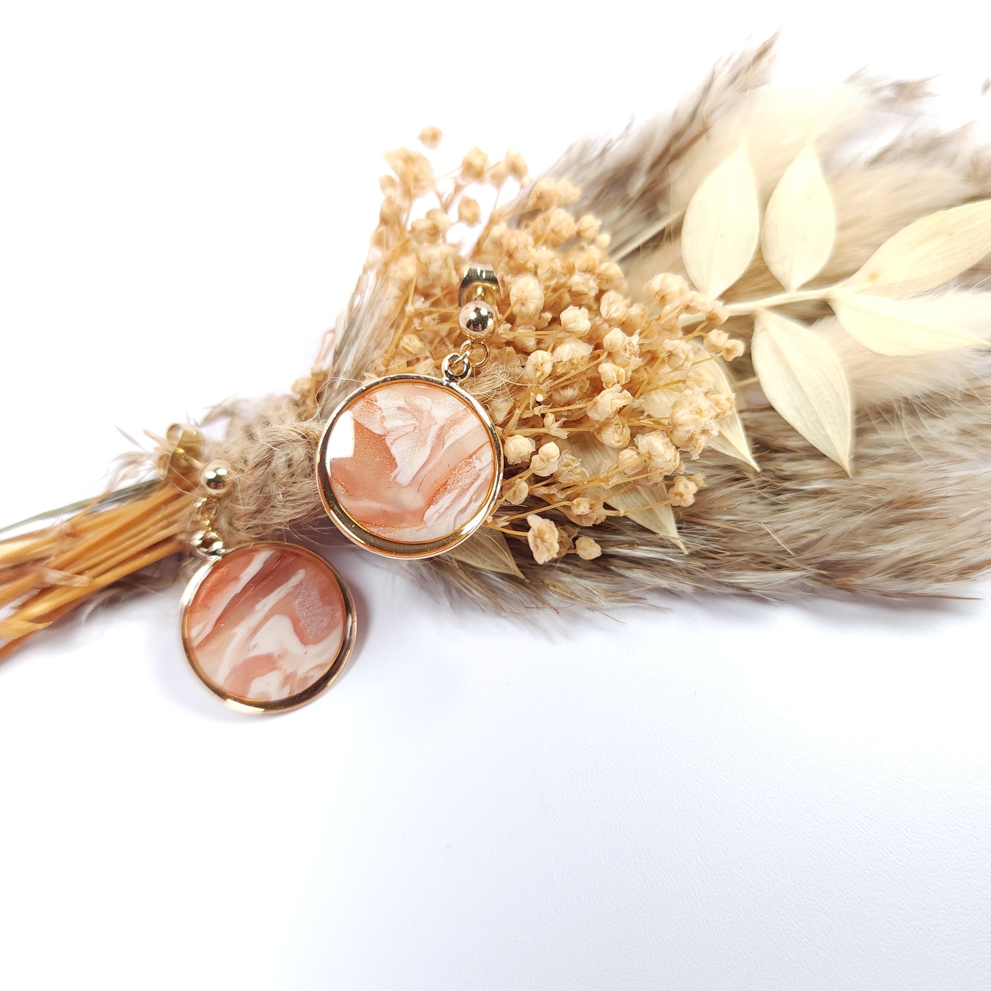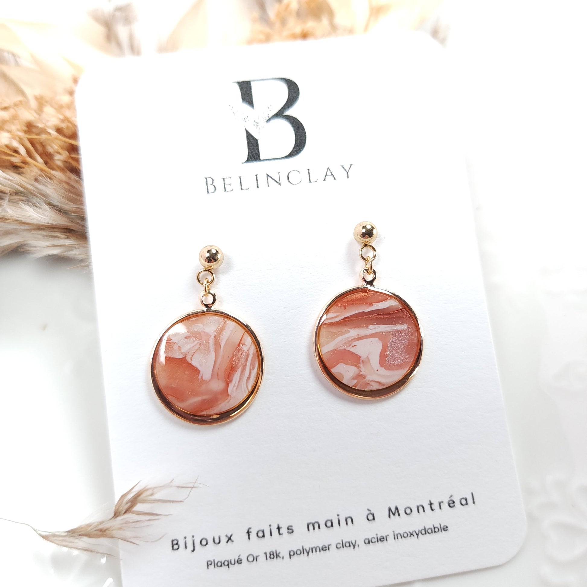 Le motif marbré, entièrement façonné à la main en argile polymère, rend chaque paire unique et empreinte de délicatesse.