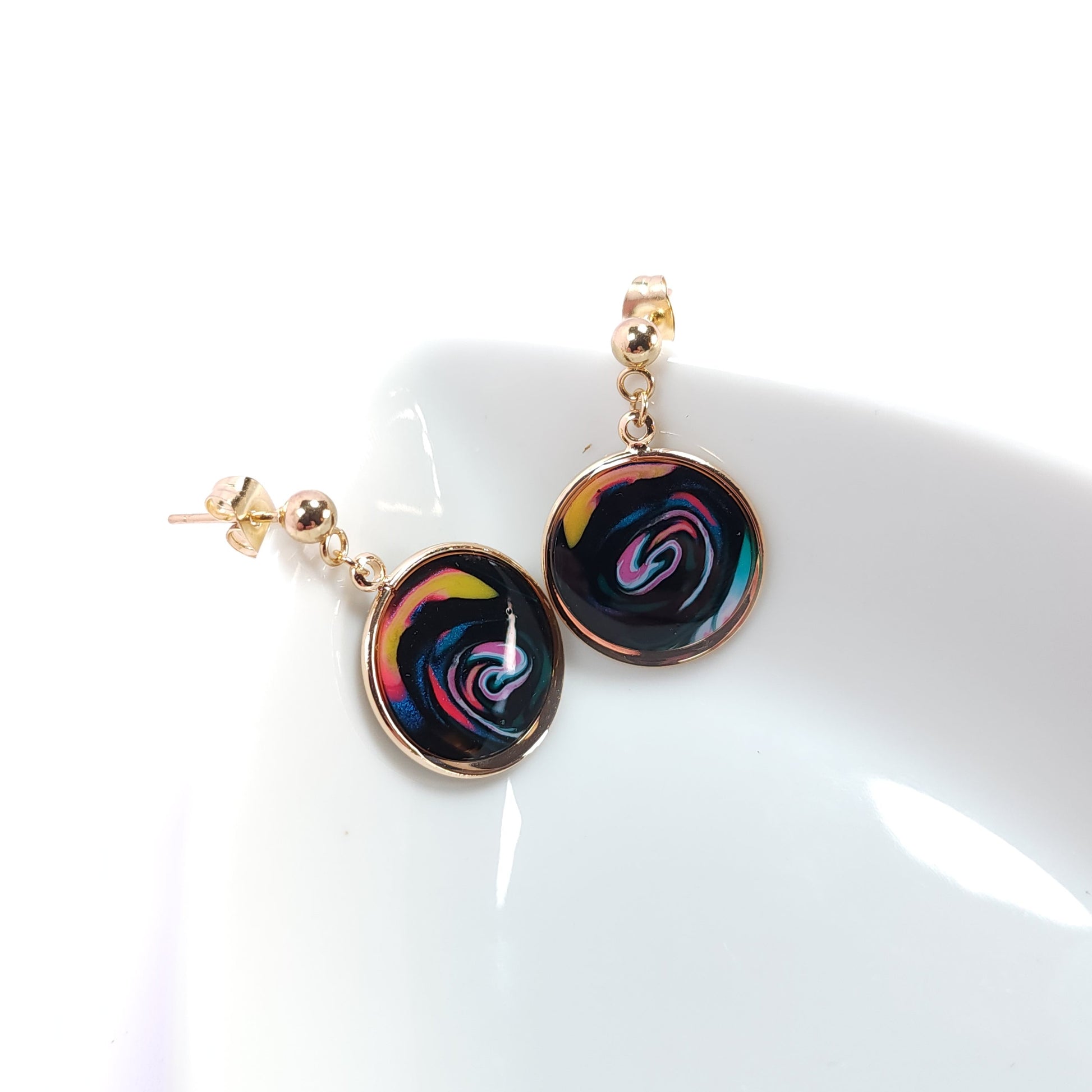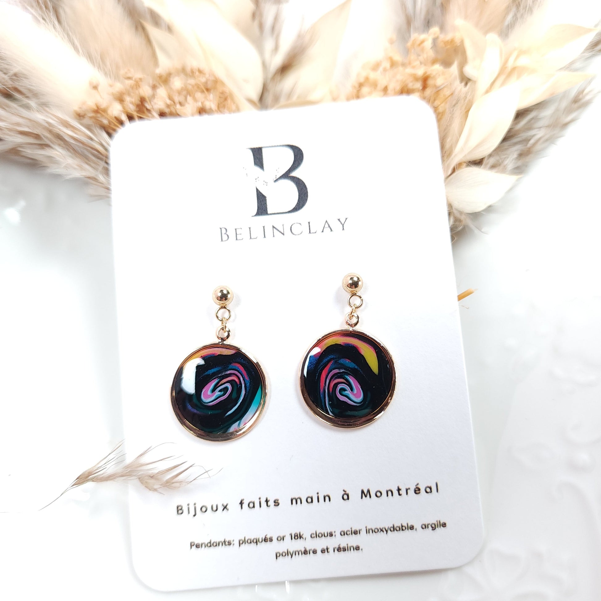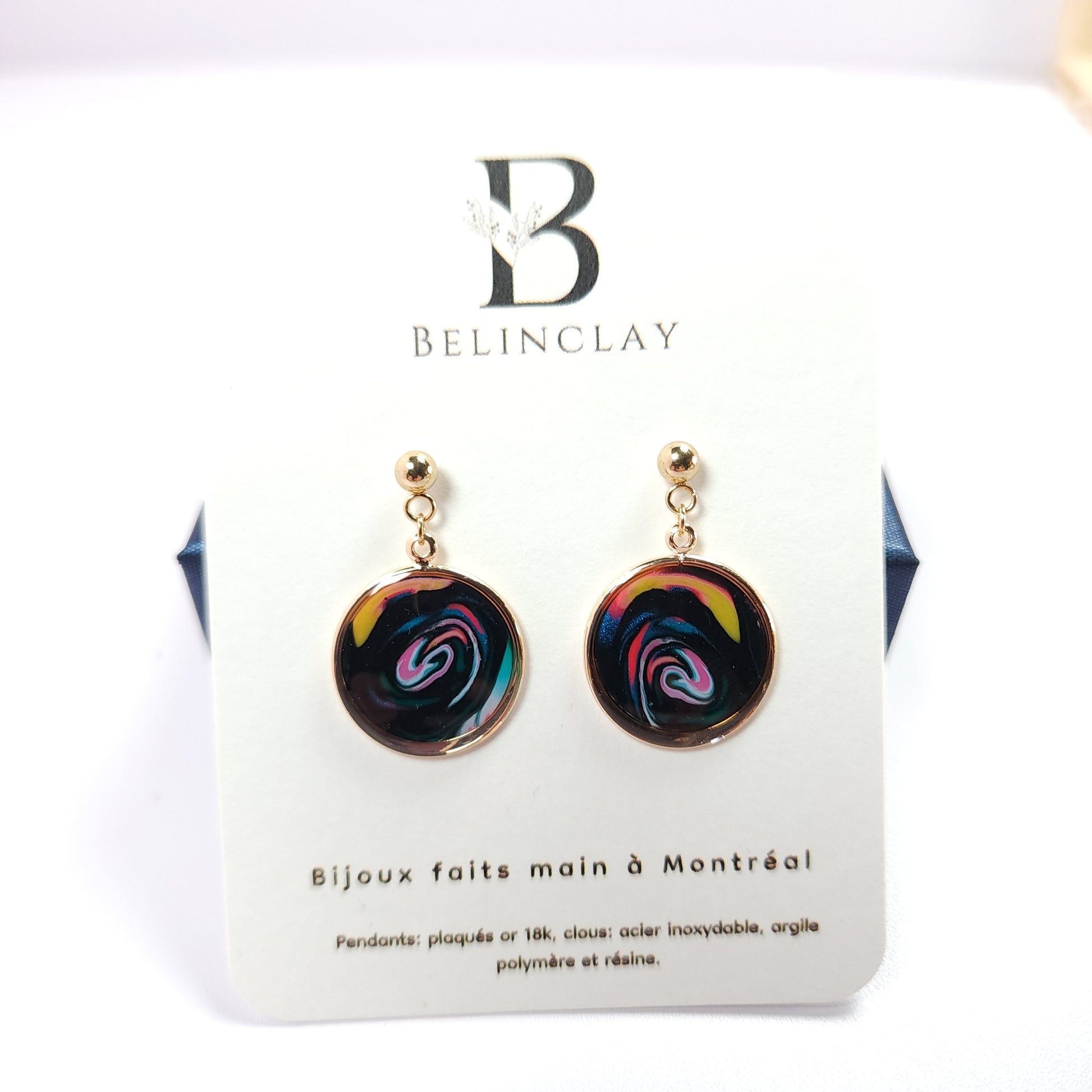 Le motif spiralé, entièrement façonné à la main en argile polymère, rend chaque paire unique et empreinte de caractère.