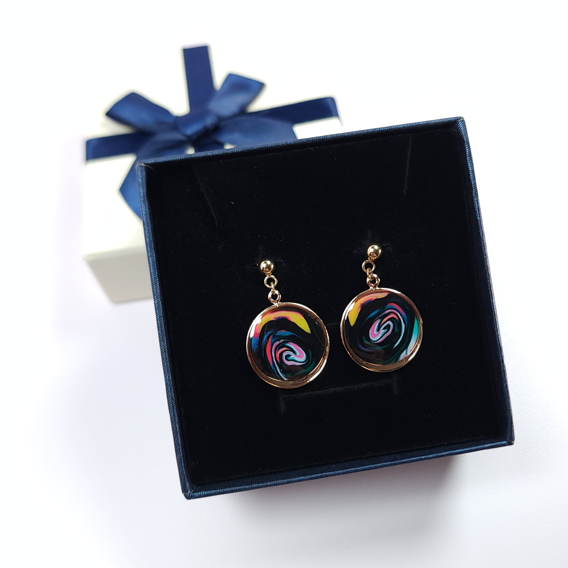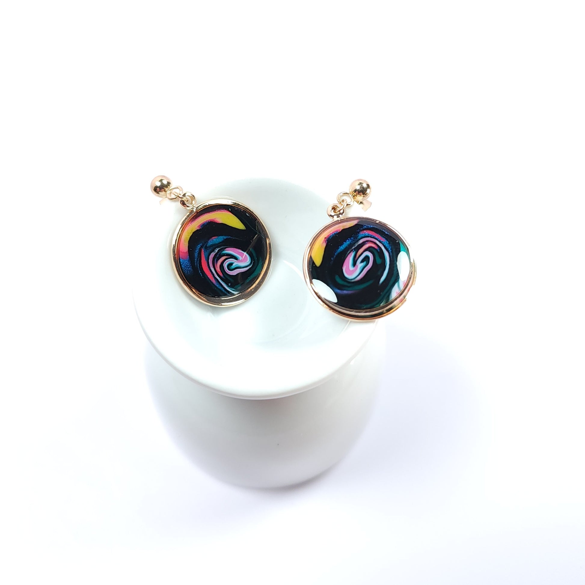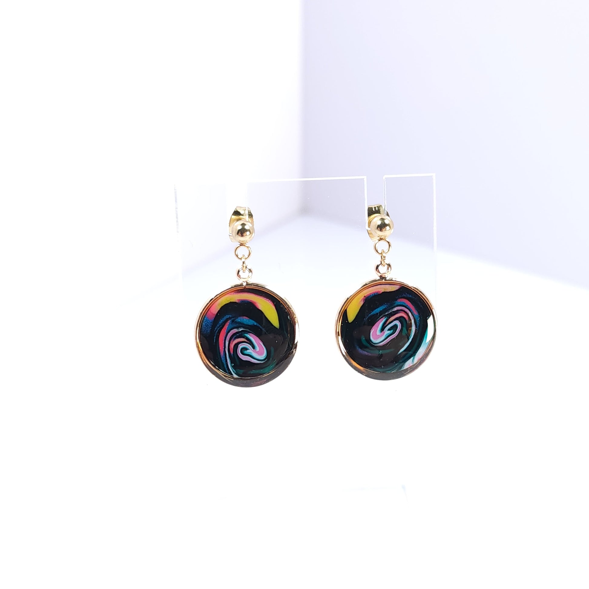 Le motif spiralé, entièrement façonné à la main en argile polymère, rend chaque paire unique et empreinte de caractère.